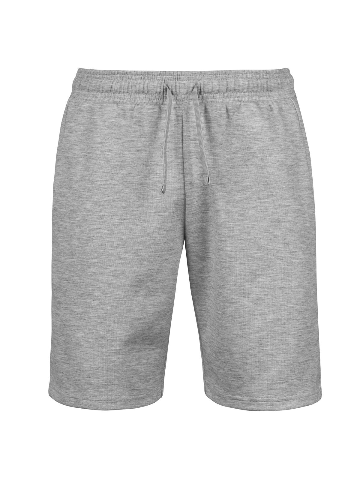 Pantaloni corti sportivi in interlock, con elastico e coulisse in vita, due tasche frontali aperte, zip posteriore con cerniera con cordoncino.