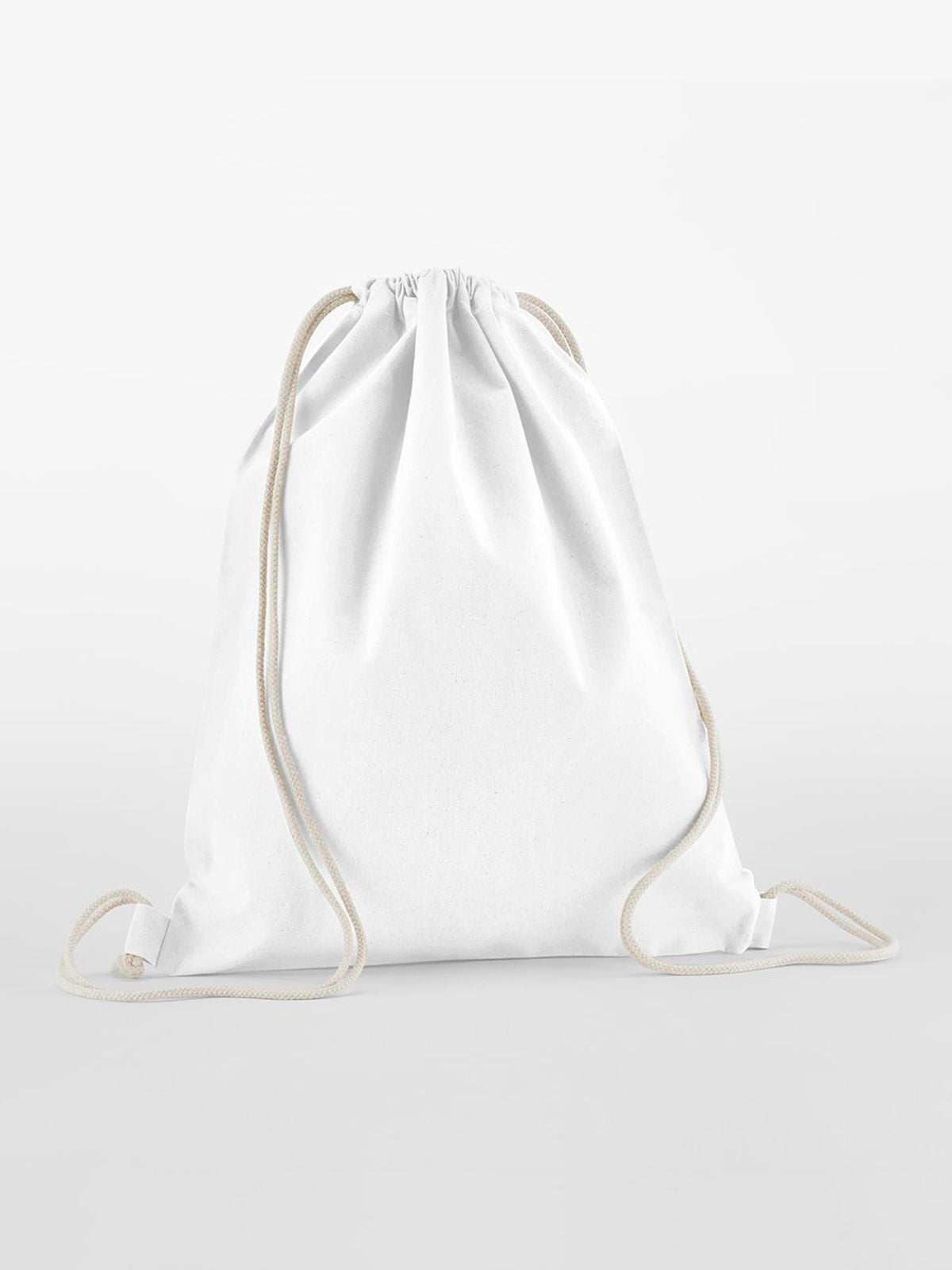 Sacca in cotone organico Inco. certificato GOTS -CU811033, chiusura con cordoncini, con attaccatura esterna cordini per una personalizzazione più semplice. Dimensioni: 37x46 cm. Capacità : 12 litri. Area stampabile: 30x32cm massimo. Etichetta strappabile.