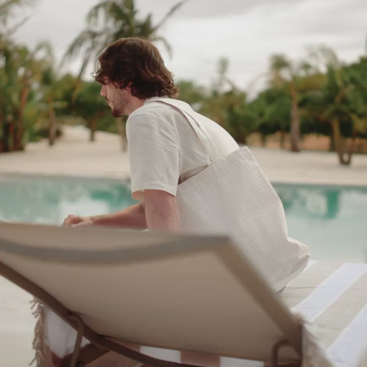 Shopper a righe in cotone organico certificato GOTS - CU811033, può essere portata a mano o in spalla. Etichetta removibile. Lunghezza manici: 67 cm. Dimensioni: 29x42x8 cm, capacità : 10 litri, area stampabile: 27x36 cm.