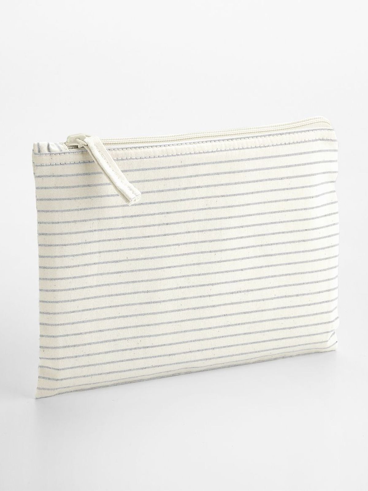 Astuccio a righe in cotone organico certificato GOTS - CU811033. Multiuso. Chiusura con zip dello stesso colore, etichetta strappabile. Dimensioni: S: 11,5x20cm, cap. 0,5lt. - M: 16x22,5cm, cap. 1lt, - L: 20x28cm, cap. 2lt.