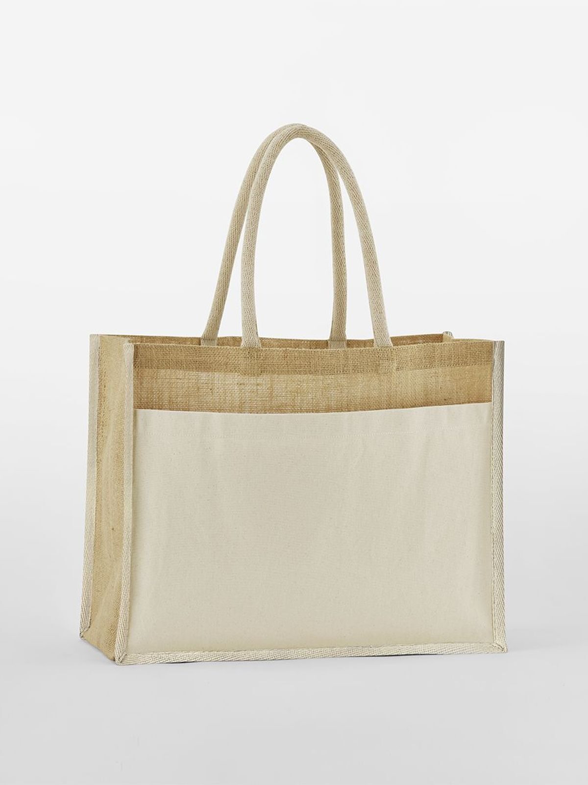 Borsa con manici in cotone Canvas e tasca frontale stampabile. Lunghezza manico: 55 cm Dimensioni: 42x33x19 Capacità : 21 litri. Area stampabile: 36x22 cm. Etichetta strappabile.