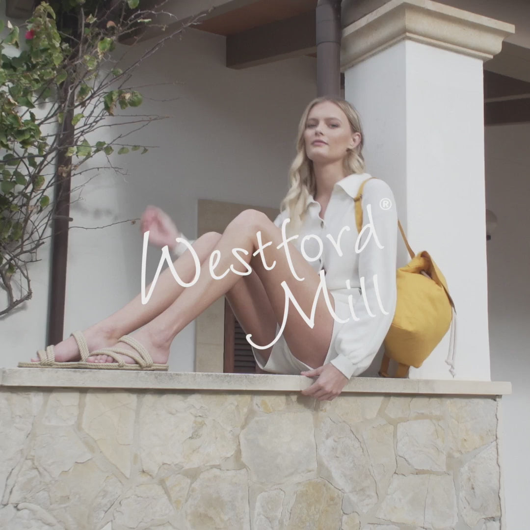 Zainetto in tessuto resistente di ottima qualità . Patta ripiegabile con bottone a pressione, chiusura con cordino. Spallacci regolabili in tessuto, manico. Etichetta removibile. Prodotto certificato GOTS e OCS - CU811033.